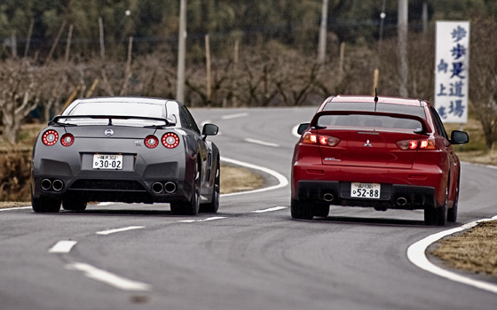 Monster Mitsubishi road racer meets much more pricey and powerful Nissan GT-R
