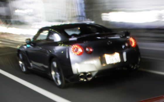 Since setting off, there's been a boring little rattle from inside the driver's door. It's joined on occasion by another one from somewhere in the centre console. This sort of thing just happens with cars, any car, and is usually easily rectified, but I'm guessing, as the GT-R's brake lights blink on momentarily in the near distance, that there's no rattling going on in there.