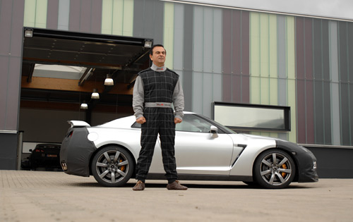 Cinching down the chin strap of his helmet, Toshio Suezaki's appearance transforms just before his thumb deploys the tidy flush-mounted door catch of the 2009 Nissan GT-R. The factory test driver is innocuous and soft-spoken, but in this moment his eyes harden. It is behind the wheel of this car, still camouflaged to frustrate spy shooters, that Suezaki-san will wield violence incongruous with his bookish manner just minutes later.