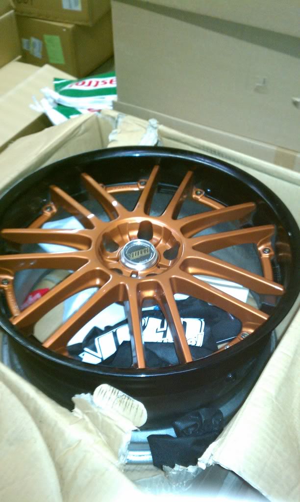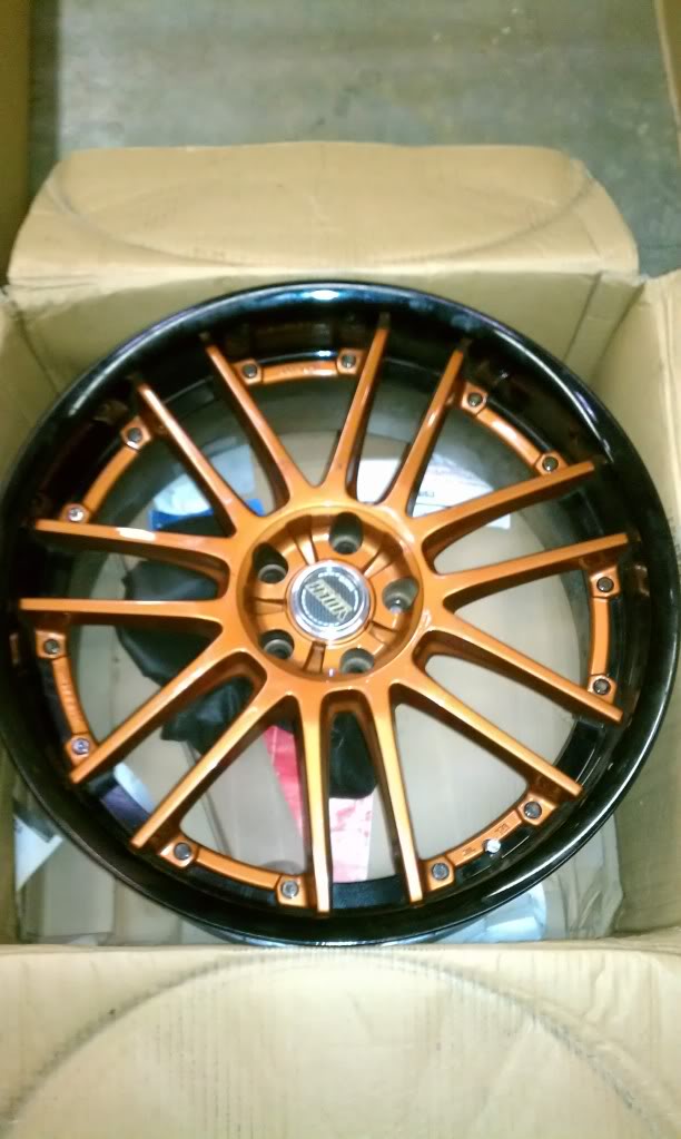 Rays Wheels GT30's for sale. 5x114.3 bolt pattern. Barrels are powder coated black and the centers are a copper/orange color. No curbs. EXCELLENT condition! Came off of a 2009 Nissan GTR premium edition. I also have spacers and lugs available. Specs are listed below.