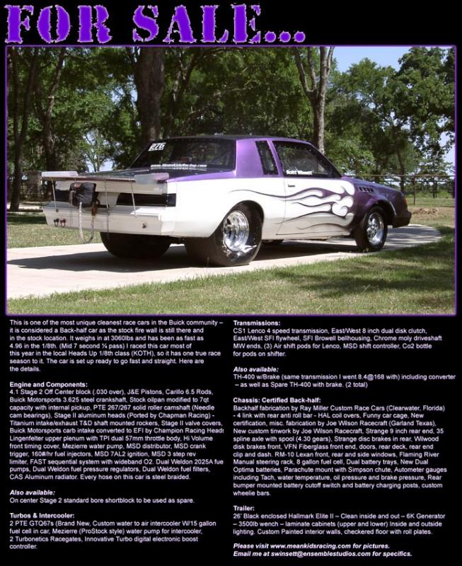 1987 Buick Grand National twin turbo she put's down roughly 1500rwhp and will run 7's 1/4 all day on moderate boost levels. She's not street legal but considering I do most of the work on the police cars in my town it's legal here